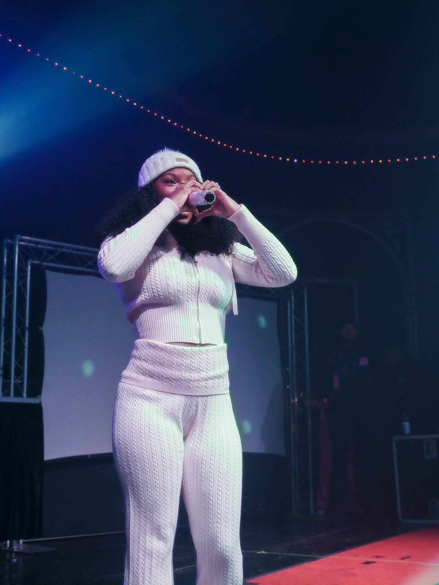 This exclusive microphone cover was specially crafted for Monaleo and presented to her during her performance in Buffalo, NY, coinciding with the release of her album "Who Did The Body?". Featuring a stunning bling design, this cover combines protective functionality with eye-catching style. A collectible piece for fans and a testament to Monaleo's rising presence in the music industry, this microphone cover merges artistry with practical stage gear.